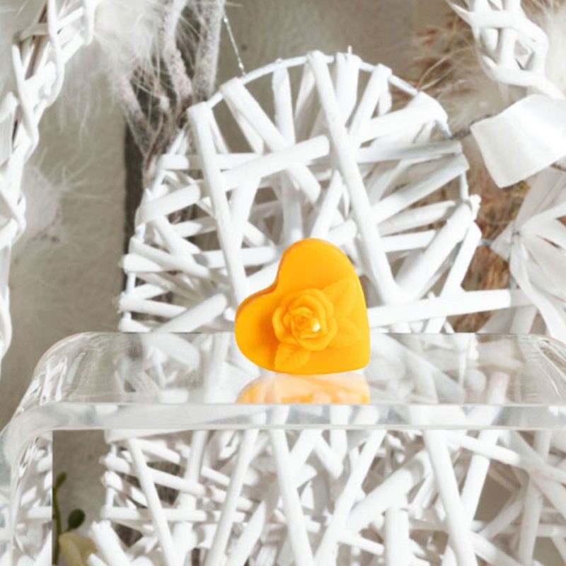 Bienenwachs Teelicht Herz mit Rose, ca. 38x20mm