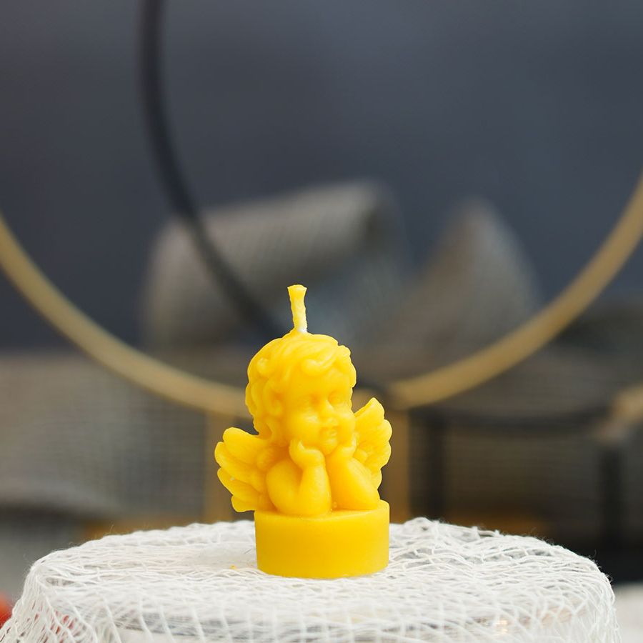 Bienenwachskerze für Weihnachten mit Figur „Engel, Kopf in Händen“