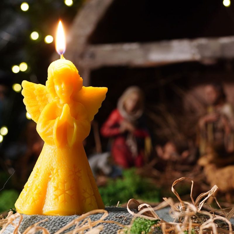 Bienenwachskerze für Weihnachten mit Figur „Engel, Sternenrock, betend“